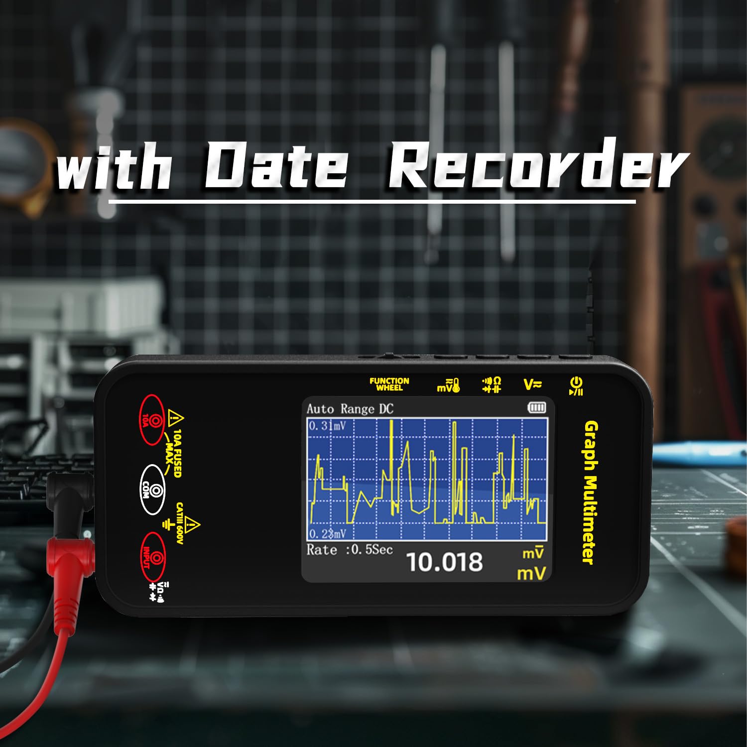 Features: 20000 counts multimeter Smart multimeter tester Pocket voltmeter with date recorder Multimeter with 360-degree rotation screen Measures voltage, resistance and continuity Measures capacitance, diode and current Measures temperature, MAX/MIN/PEAK Auto range, auto power off, low battery indication Specifications: MAX Display: 20000 counts DC Voltage: 2V/20V 0.0001V/0.001V ±(0.1%+3); 200V/1000V 0.01V/0.1V ±(0.5%+3); 20mV/200mV 0.001mV/0.01mV ±(0.1%+3) AC Voltage (Frequency:40Hz-1000Hz): 2V/20V/200V/750V 0.0001V/0.001V/0.01V/0.1V ±(0.5%+3); 20mV/200mV 0.001mV/0.01mV ±(0.5%+3) AC Current (Frequency:40Hz-1000Hz): 2A/10A 0.0001A/0.001A ±(0.8%+3) DC Current: 2A/10A 0.0001A/0.001A ±(0.8%+3) Resistance: 200Ω 0.01Ω ±(0.5%+3); 2KΩ/20KΩ/200KΩ 0.0001KΩ/0.001KΩ/0.01KΩ ±(0.2%+3); 2MΩ/20MΩ 0.0001MΩ/0.001MΩ ±(5.0%+5); 200MΩ 0.01MΩ ±(5.0%+20) Capacitance: 999.99nF 0.01nF ±(5%+20); 9.999μF/999.99μF 0.001μF/0.01μF ±(2%+5); 99.999mF 0.001mF ±(5%+10) Temperature: -20℃~1300℃/-4℉~2372℉ 1℃/1℉ ±(2.0%+5) Date Recorder Measurements: 5 times (MAX 10000 dates per timers) Continuity: Yes Diode: Yes Power: 1200mAh (built-in, rechargeable) Size: 143*66*21mm Weight: 159g Package Includes: 1 x Digital Multimeter 1 x Test Leads 1 x Charging Cable 1 x Carrying Case 1 x Thermocouple 1 x User Manual