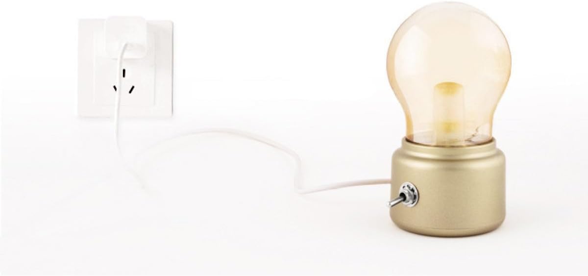 Package Include 3 * USB Rechargeable Bulb Light Retro Night Light Vintage Glass Bulb Desk Lamp for Bedroom Bedside Desk Lighting (Golden) Characteristics - Color: Golden retro night light. - Material: ABS + Glass vintage bulb lamp. - Size: 11 * 7 * 6cm/ 4.3 * 2.76 * 2.36 inch (L*W*H) rechargeable bulb. - to apply in bedroom, room, hotel rooms and much more places bulb desk lamp. - USB charging with low voltage, safe and convenient USB bulb lamp. - Unique bulb shape with metal toggle , easy to use. - A rechargeable battery inside. Every full charge will work lasting about twelve hours. - High light LED with . - quality and workmanship, eco-friendly, safe and .Goods InformationUSB bulb lamp With the vintage appearance and light, it will bring you a warm and romantic feeling.bulb desk is a rechargeable bulb lamp.rechargeable bulb Are you looking for a night light that is not only providing enough illumination, but also vintage and durable? This will be an for you.retro night light It is also a nice decoration for your desk