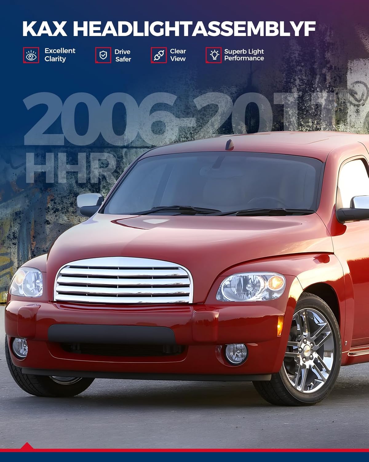 KAX Headlight Assembly,Black Headlights Compatible with 2006-2011 HHR, Amber Reflector Color Clear Lens Color