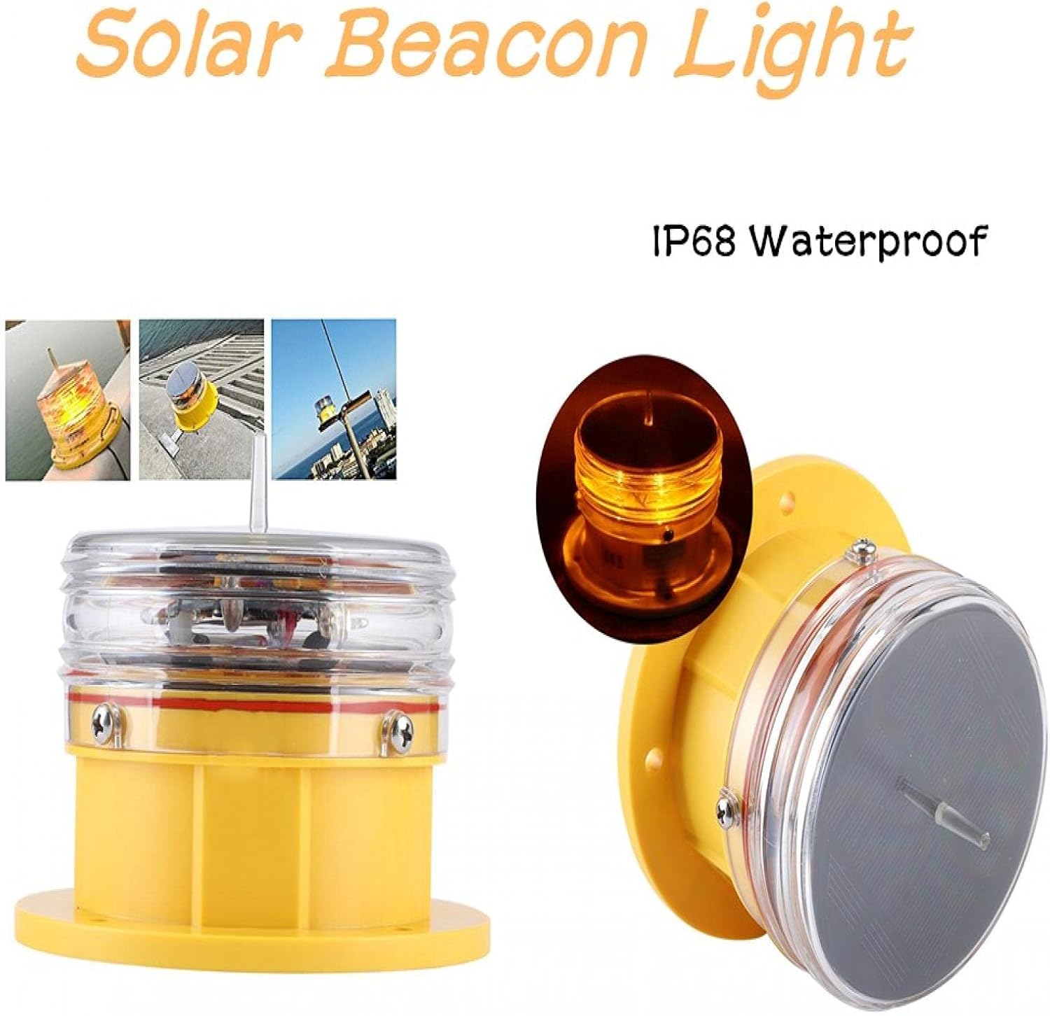 Specification:Condition: Brand NewItem Type: Beacon LightMaterial: PlasticColor: As Pictures ShownModel: LS / CLight Source Life: > 1000000 hoursBattery Capacity: 3.7V1800MA (Built-in)Battery Type: Li-ion batterySolar Panel Power: 1.2WSolar Panel Life: > 30 yearsPower Consumption: <0.1WVertical Light Emitting Angle:> 8°Visible Distance: 1-3 nautical milesHorizontal Light Angle: 360 degreesFlash Light Intensity: Meet IALALight Source: LEDStorage Temperature: -55 ℃ - 85 ℃Working Temperature: -55 ℃ - 85 ℃Wind Resistance: 80 meters / secondDaylight Switch Illumination Threshold; 300LUX-100LUXWaterproof Rating: IP68Continuous Lighting Time:> 15 days (calculated by working 12 hours a day) Package List:1 x Beacon Light